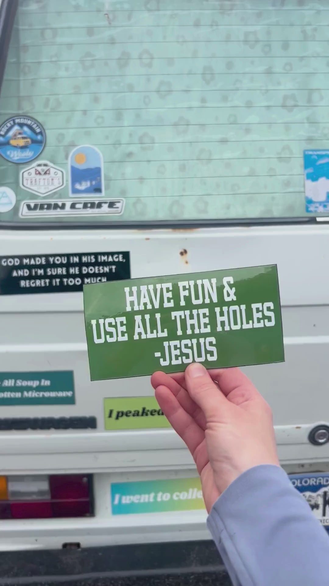 📏8"x5" (most of our stickers are 10x3, however, these are from my very first batch of bumper stickers I made for fun during my travels across country in my Vanagon ❤️ This 8x5 is the OG!)
