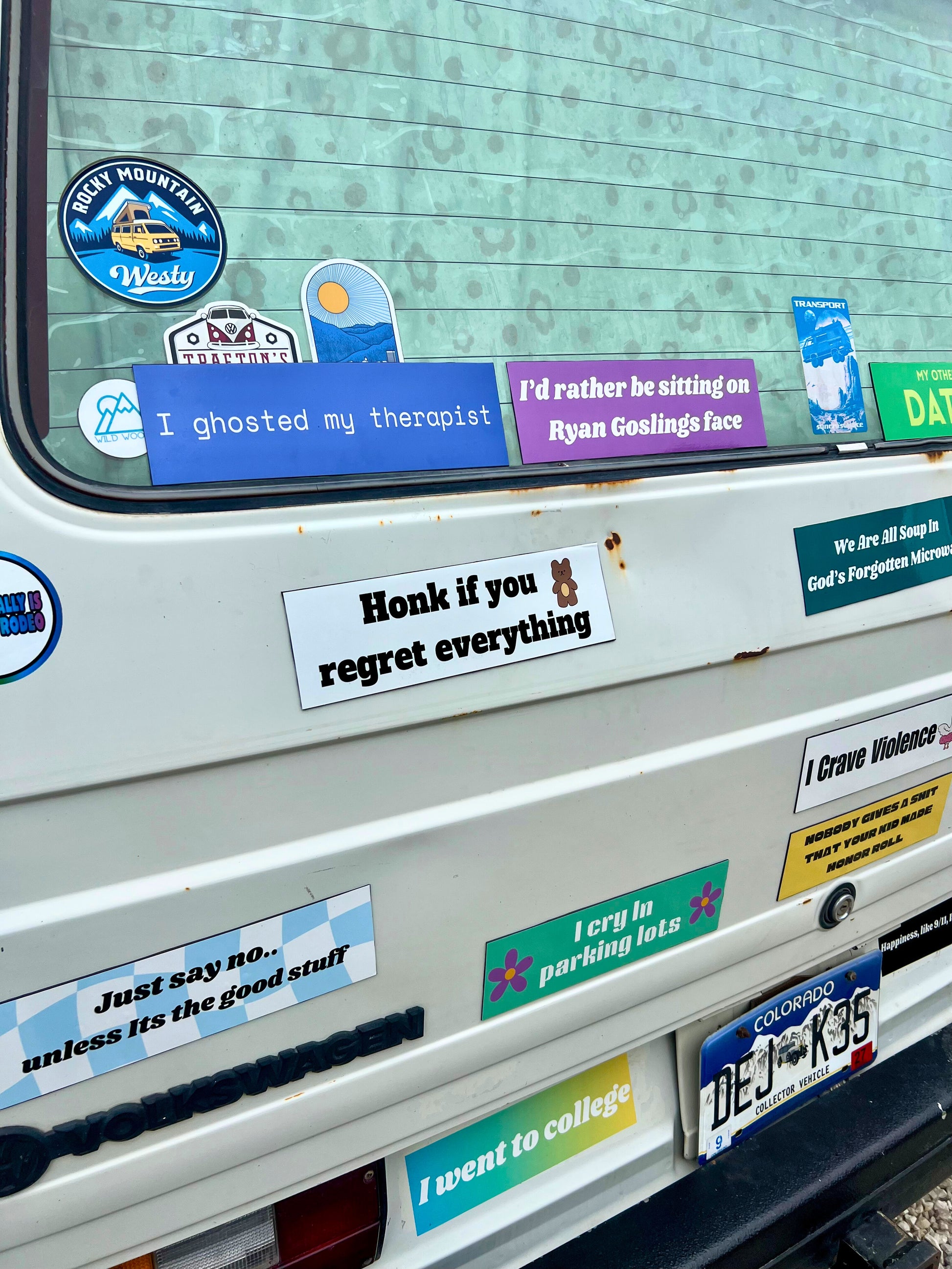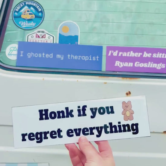 Because what’s life if not one long chain of questionable decisions and haunting flashbacks? This sticker is for the overthinkers, the panic scrollers, and anyone who’s ever said “it is what it is” while dying inside. Honk once for bad choices. Twice if you did it on purpose.