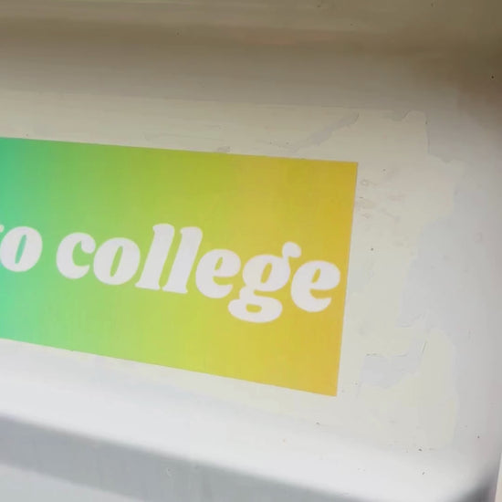Not Harvard. Not Yale. Just… college. This sticker is for anyone tired of bumper bragging and alumni ego trips. You did your time, maybe learned something, and now you’re just here—overqualified, underpaid, and clinging to your student ID for the Spotify discount.