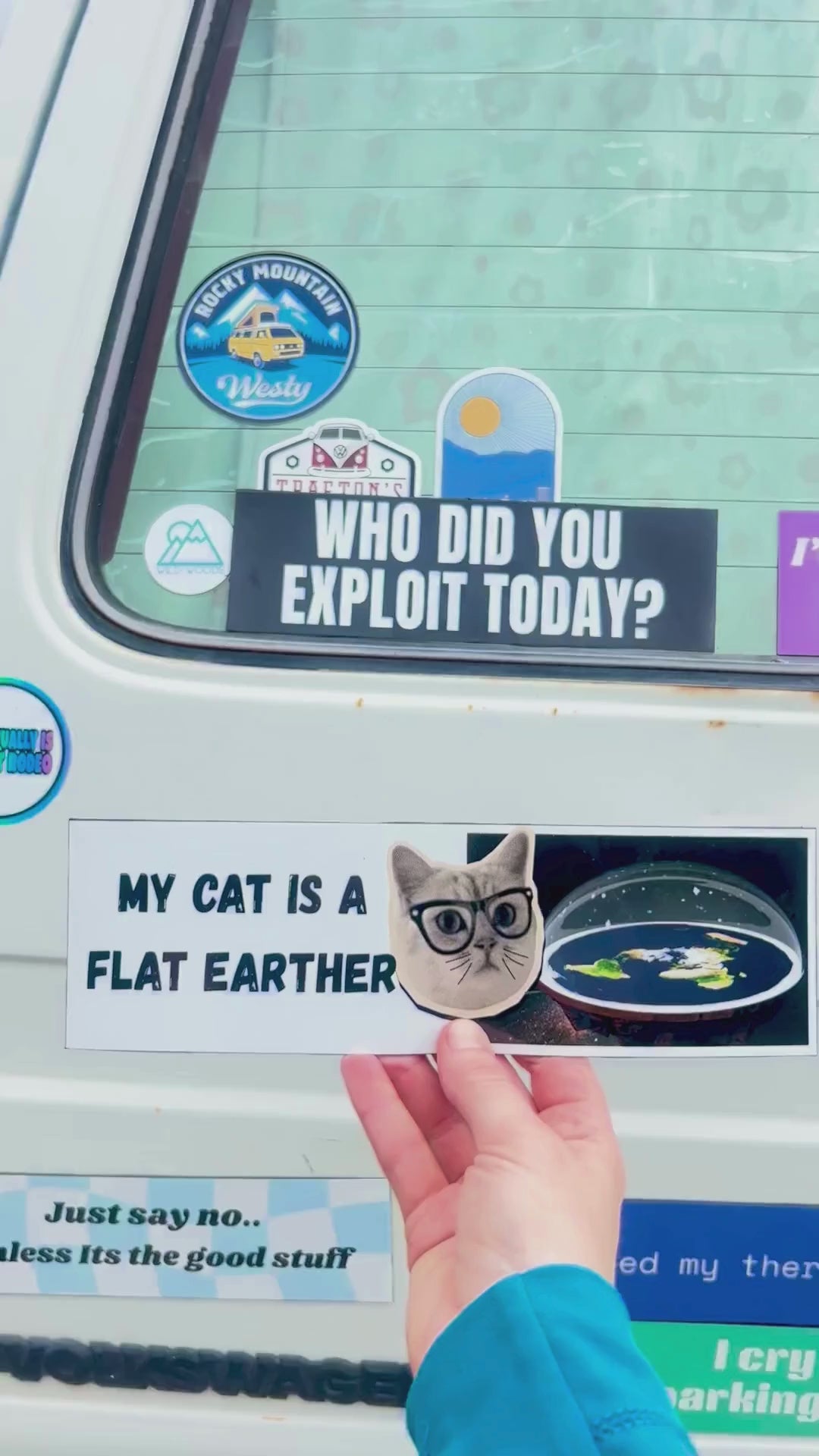 This sticker is chocked full of feline conspiracy vibes. Perfect for cat lovers who know their pets are up to something... off the edge of the world.