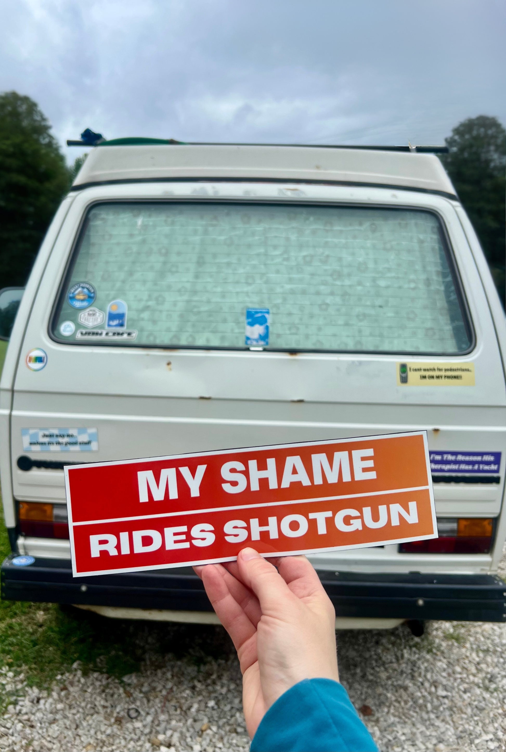 She’s not just along for the ride — she adjusted the mirrors and synced her Bluetooth. This sticker is for anyone who’s ever made a questionable life choice, cringed about it mid-drive, and kept going anyway. Shame’s in the passenger seat, vibes are in the trunk, and dignity? Nowhere to be found.